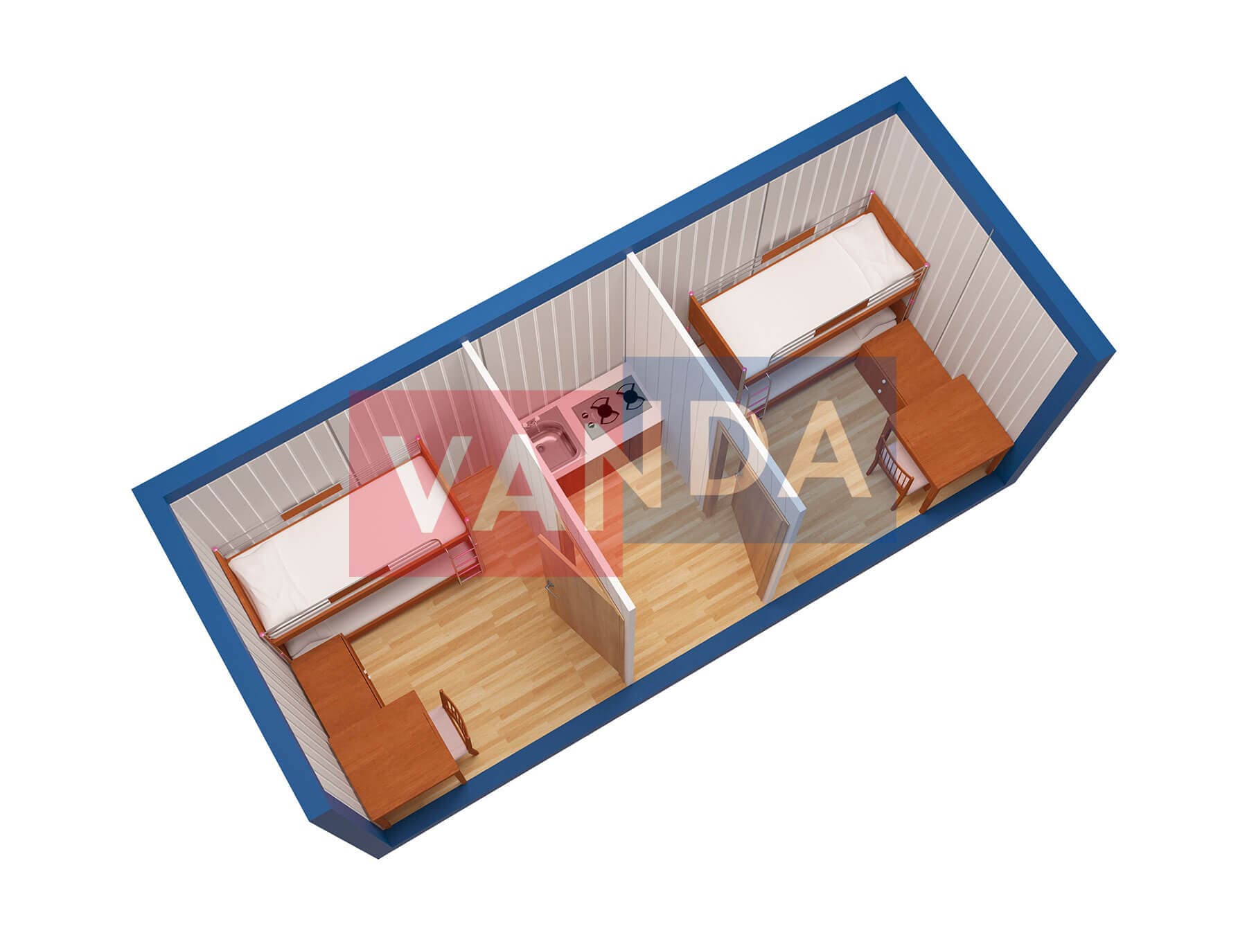 Проект общежития из блок контейнеров 9x21,6 Панели МДФ