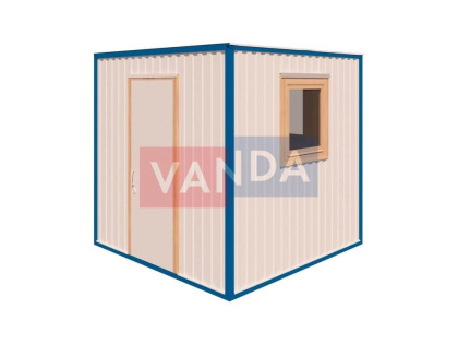 Типовая недорогая строительная бытовка эконом-класса выполняется из металлического профиля с обшивкой из оцинкованного листового металла. Пол изготовлен из ДСП влагостойкого 36 мм , утепление – из фольгированного пенофола. Внутренняя обшивка выполняется из вагонки или ДВП.Контейнер бытовки комплектуется дверью с удобным замком и окном с двойным остеклением. Окно довольно широкого размера позволяет осуществлять визуальное наблюдение за прилегающей территорией.